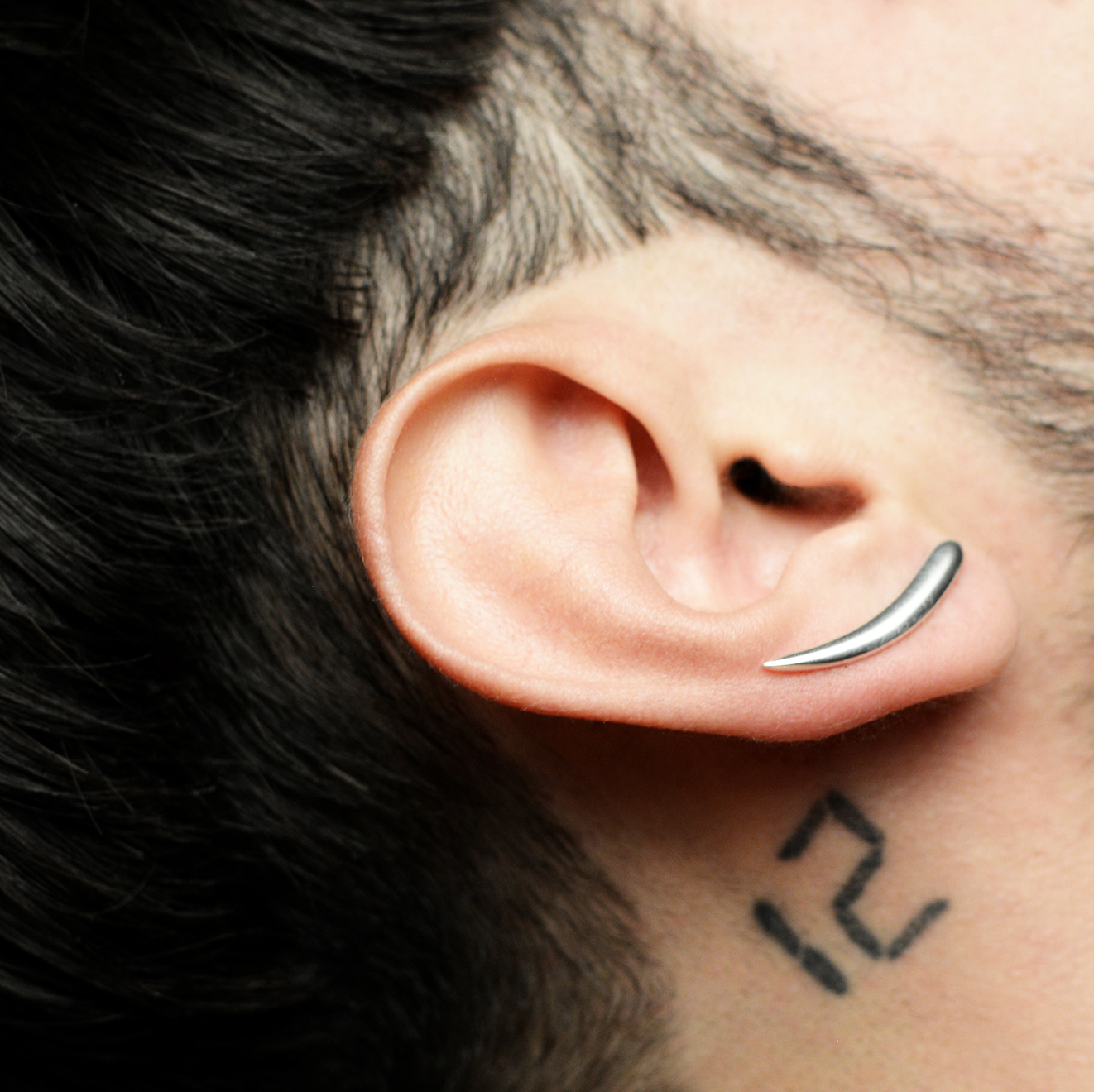 In Spanish, an accent mark is called “tilde”. This earring outlines the shape of the ear.